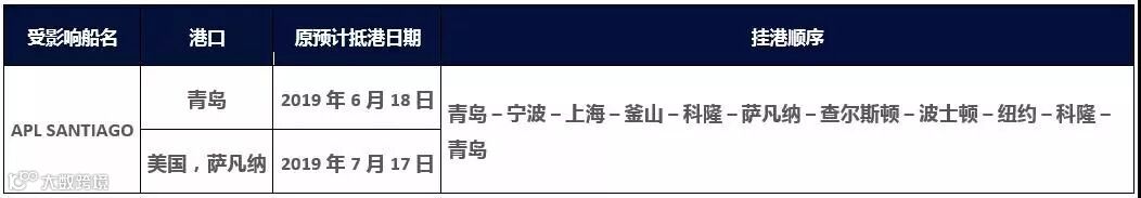 - 从青岛进口的货物,可从釜山卸货,并转接 PRESIDENT WILSON 008 (0DB4FE1PL),预计于2019年6月12日抵达青岛