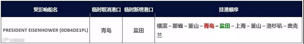 SC1 停航期间,EX1 航线,船名为 PRESIDENT EISENHOWER 将临时挂靠盐田