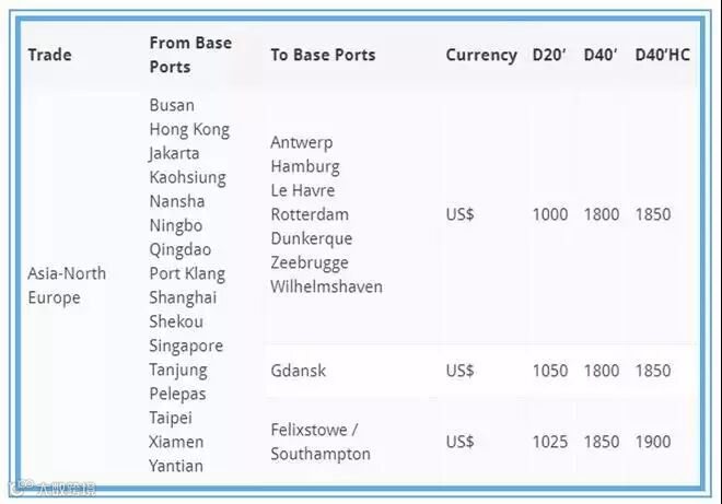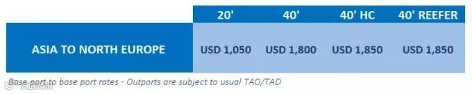 目的港:至所有北欧港口(包括英国及葡萄牙至芬兰/爱沙尼亚的全范围)