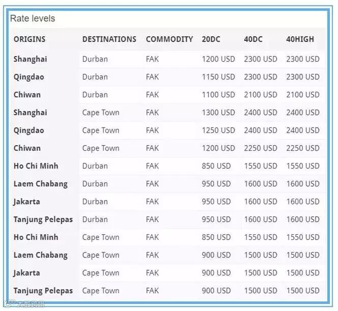MSK宣布上调自上海、青岛、赤湾至德班、开普敦港口的FAK费率。