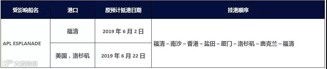 APL宣布更新其船舶安全附加费,自2019年7月1日起生效。详情如下: