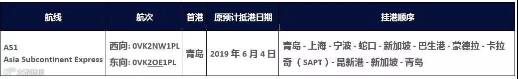 亚洲至红海、印度次大陆及泛太平洋市场六、七月停航及调整计划如下: