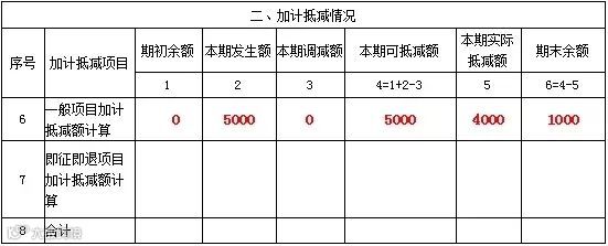 当期可抵减加计抵减额=上期末加计抵减额余额+当期计提加计抵减额-当期调减加计抵减额=0+5000-0=5000(元)