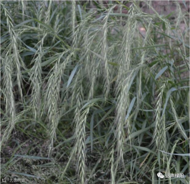 鹅观草(学名:Roegneria kamoji Ohwi )别称弯鹅观草、弯穗鹅观草、垂穗鹅观草、弯穗大麦草。禾本科鹅观草属多年生牧草。分布于中国东北、内蒙古、河北、陕西、山西、宁夏、新疆等地。生长于砾石质山坡草地及林缘。鹅观草茎叶柔软,适口性好,各种家畜均喜食,尤一牛、马最喜食属中等饲用植物。同时也是优良的水土保持植物。