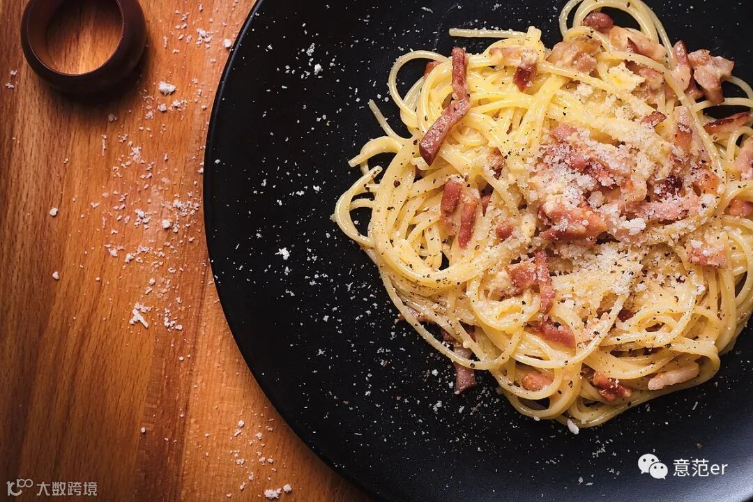 Spaghetti alla carbonara(意大利spaghetti 面,用培根、鸡蛋和Parmigiano-Reggiano DOP奶酪拌匀)