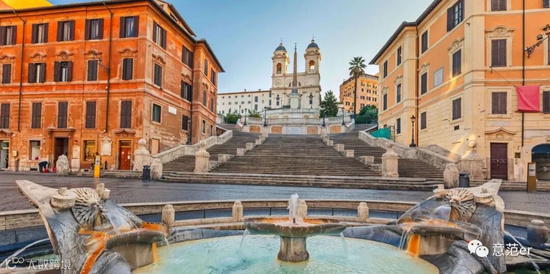 l西班牙广场(Piazza di Spagna,西班牙大阶梯——巴洛克风格的台阶,下面有一座喷泉,上面有一座教堂);