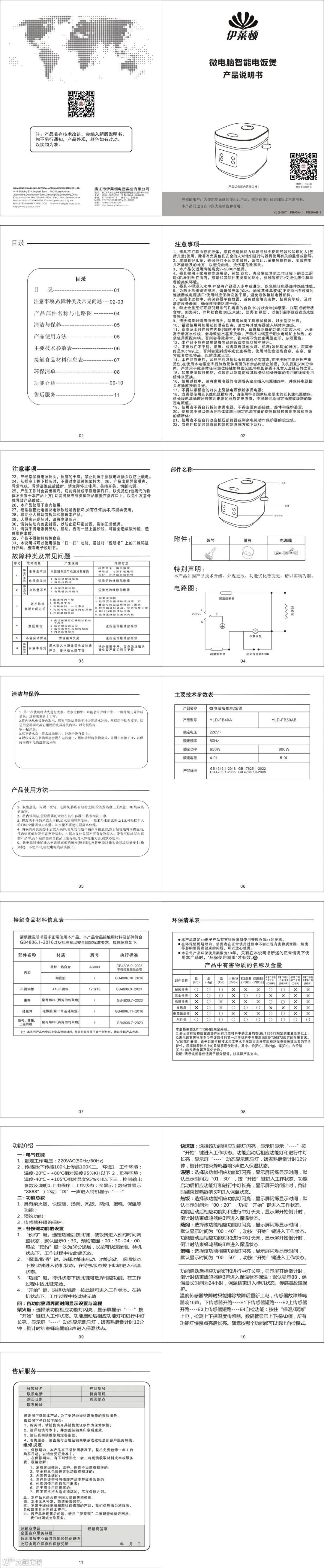 微电脑智能电饭煲说明书YLG-50T、YLG127