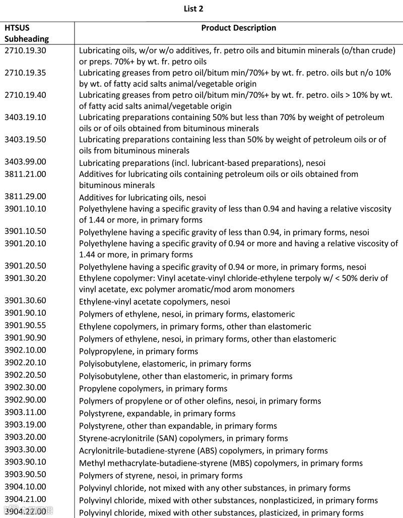 3. 清单2包括284种总值达160亿美元的产品,它们主要受益于中国的产业政策(如补贴),包括部分化工产品(润滑油、塑料等)、用于高科技制造的机械产品,半导体和半导体制造机械也加入了清单2,针对这些商品的关税将在公开征求意见期结束后实施。