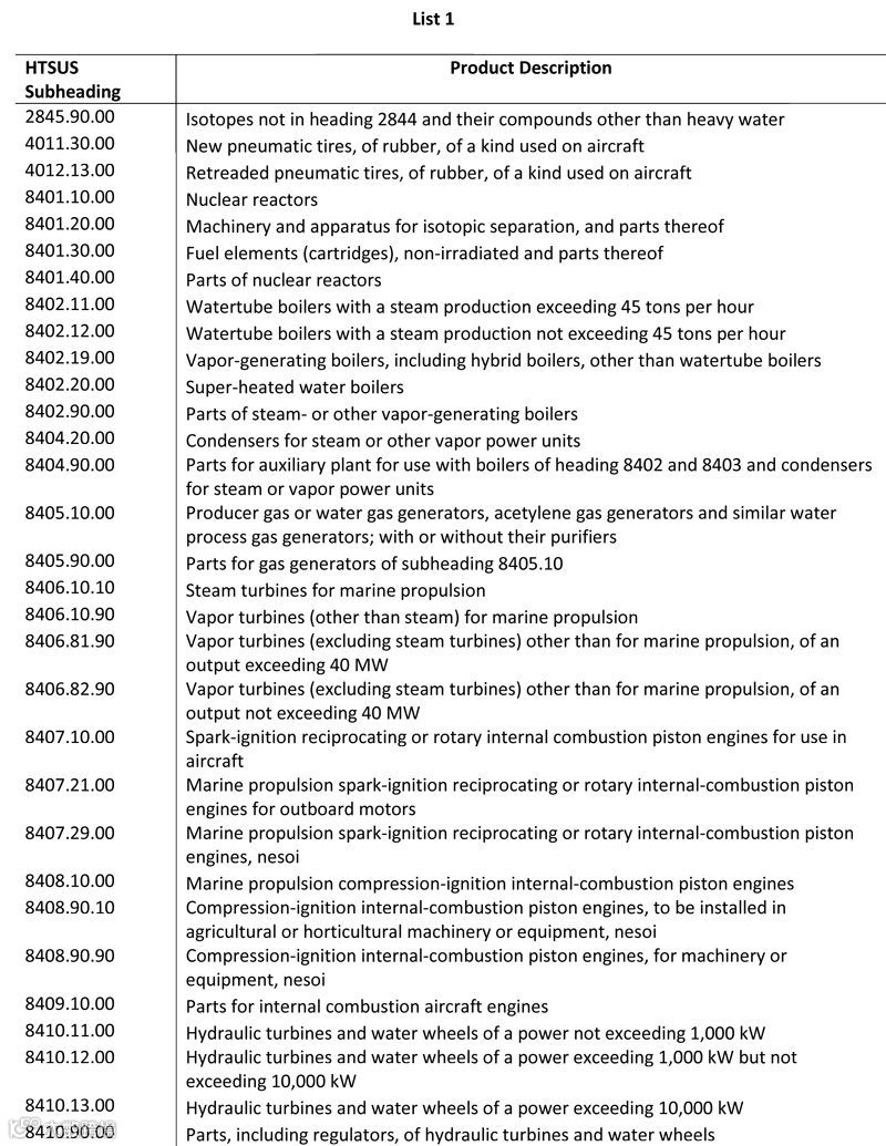 请注意,清单中包含两部分,List 1为7月6日正式开始征税产品清单,List 2为正在评估中的另一部分产品清单。请根据HTS代码查询具体产品。
