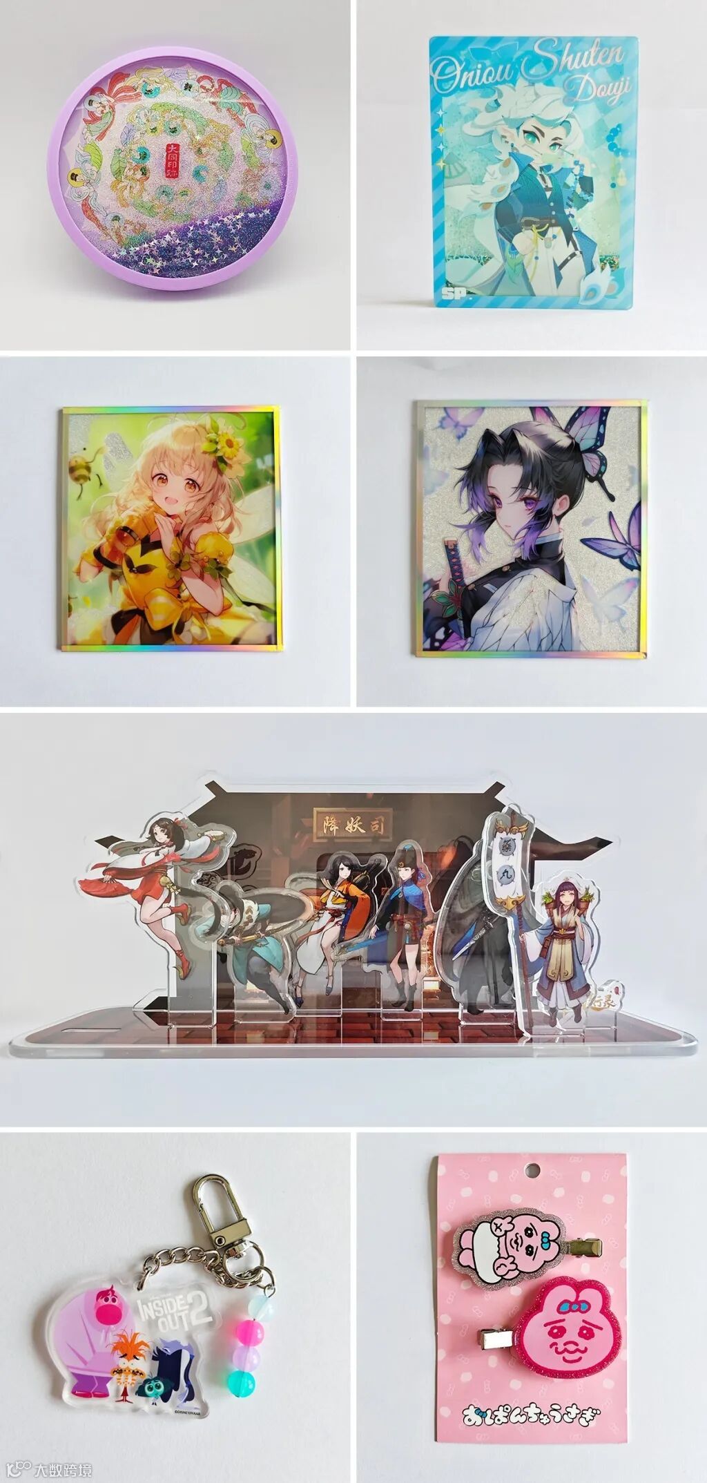 亚克力类:动漫立牌、钥匙扣、流沙摆件、挂饰、流沙杯垫等;