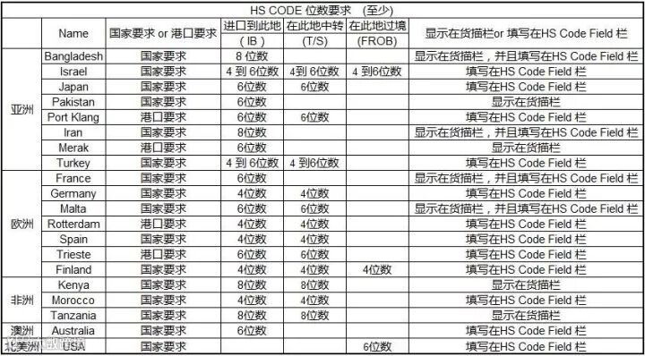 近年来,各国进口海关纷纷要求在进口的货物提单的信息中显示HS CODE的信息。在此我们为您汇总了到目前为止我们所收集到的各国对HS CODE的要求如下:
