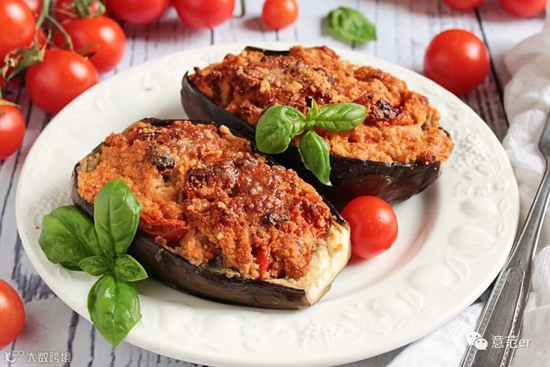 lParmigiana di melanzane alla calabrese (油炸茄子,分层铺有一层罗勒味的番茄酱、马苏里拉奶酪、佩克立诺或顶级巴马臣奶酪,再一起烘焙)