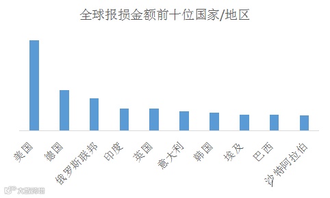 图:全球报损金额前十的国家/地区