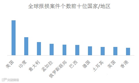 图:全球报损案件数量前十位国家/地区