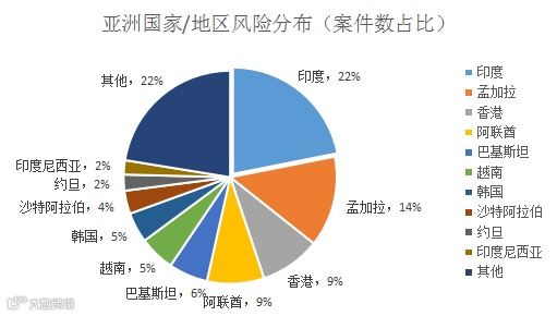 图:亚洲报损案件数量分布情况