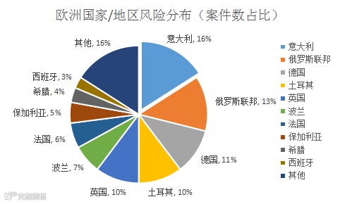 图:欧洲报损案件数量分布情况