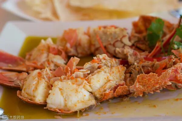 龙虾配特级初榨橄榄油、盐和柠檬汁