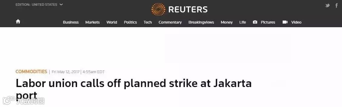 但,根据路透社最新报道,印尼当地工会已经决定取消雅加达丹戎不碌港的罢工,以保证港口的正常运作,而该罢工原定于5月15日开始。