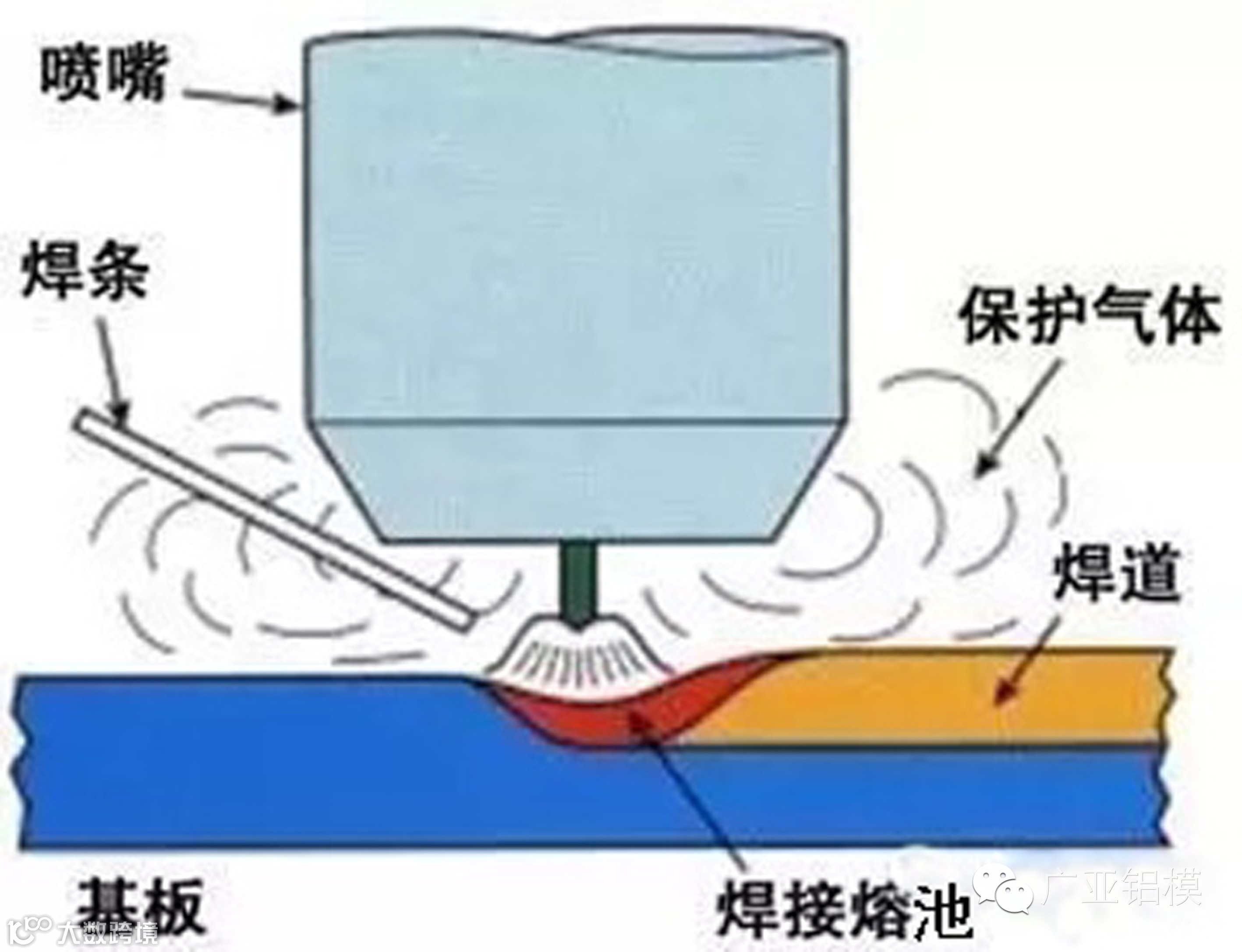 氩弧焊:是钨极惰性气体保护焊的简称。在焊接过程中钨极不熔化,利用钨电极和焊件之间产生的电弧作为加热源,使焊缝金属熔化,同时由焊炬的喷嘴送出氩气对焊缝的熔化金属保护,还可根据需要另外添加填充金属。在国际上称为:TIG焊。