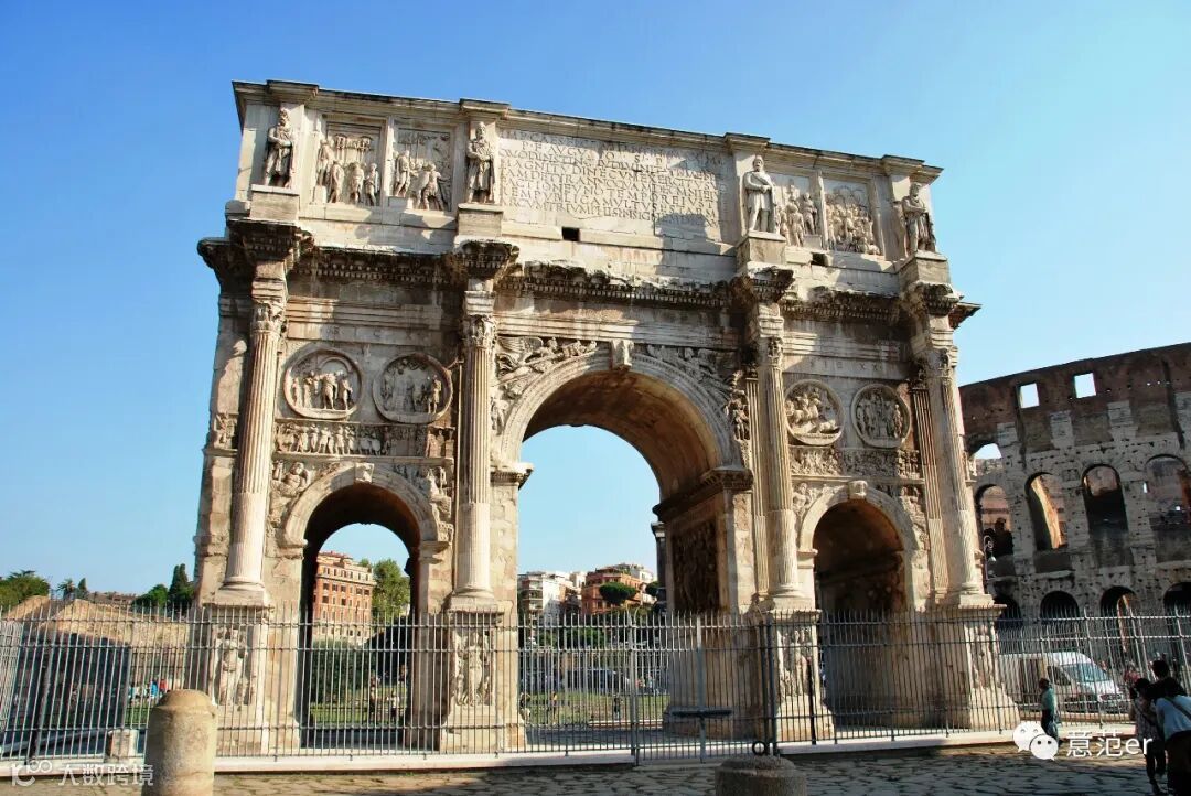 屹立于罗马城南的斗兽场被称为世界八大奇迹,阳光照来,整齐的三排门洞光华耀眼,虽然已有2000多年的历史,但巨大的大理石雕砌而成的三层椭圆形建筑,依然硬朗地矗立于阳光与风雨的飘洒之下,巨柱圆拱、卷涡复合式柱头格外坚挺。斗兽场北边是一座记载罗马皇帝远征波斯凯旋的凯旋门,拱门窟顶,浮雕栩栩,正是欧洲文艺复兴时期艺术的杰作,正是这些杰作,使罗马登上了世界艺术之都的宝座。