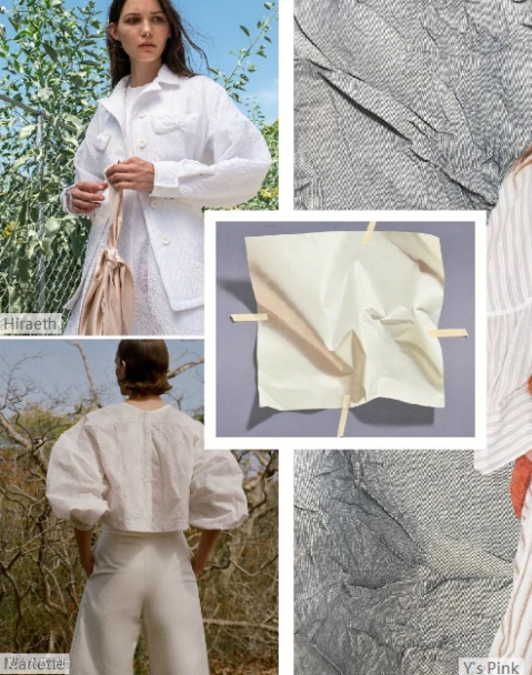 褶皱纸质感的棉麻面料,无论是面料的制造工艺,还是织物的形态都有更多元化的呈现。