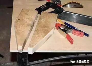STEP3:其中的两块,木板这样锯开成楔形,注意锯口也要刨花打磨。