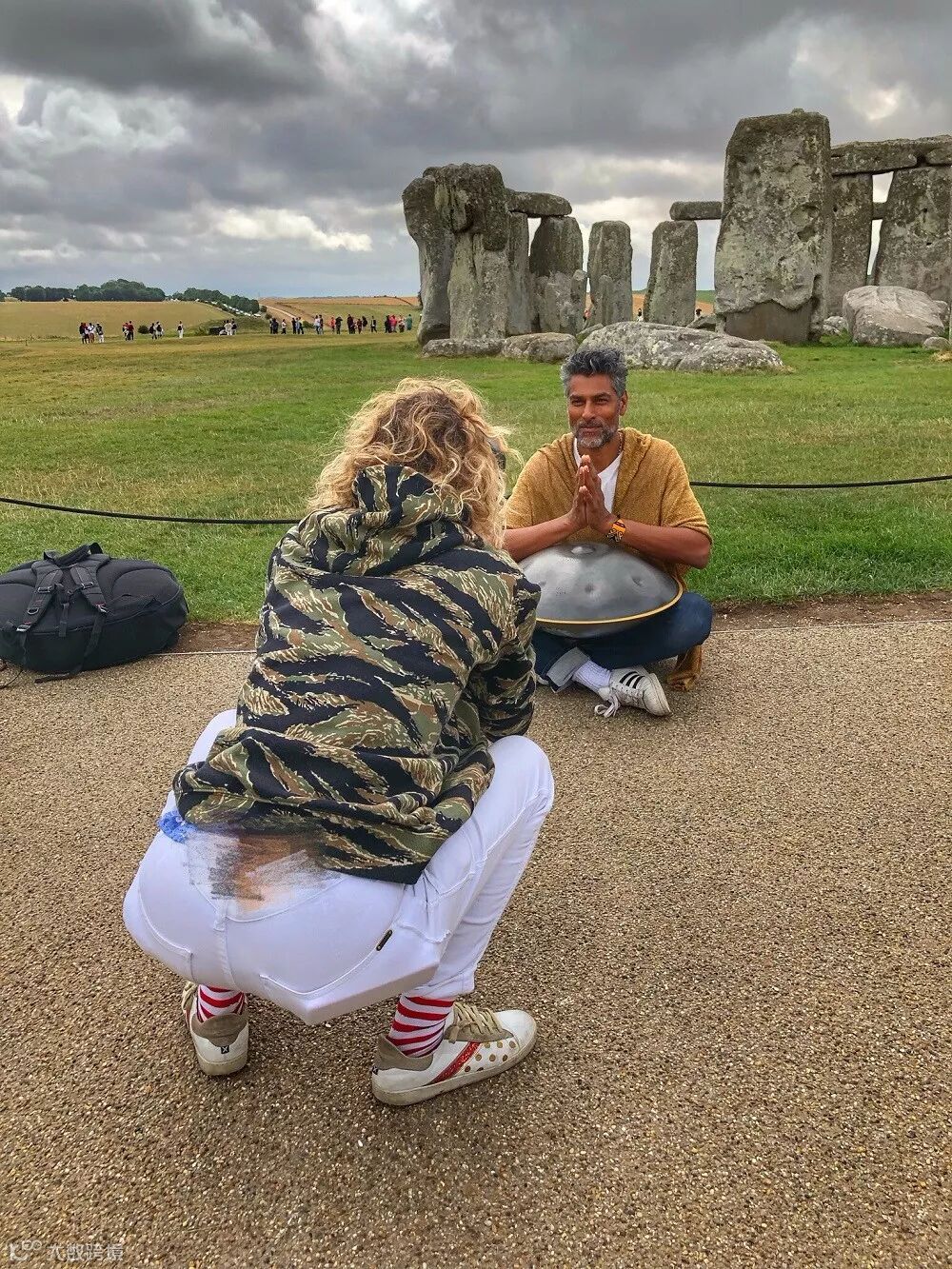一对艺人情侣在巨石阵之前留影