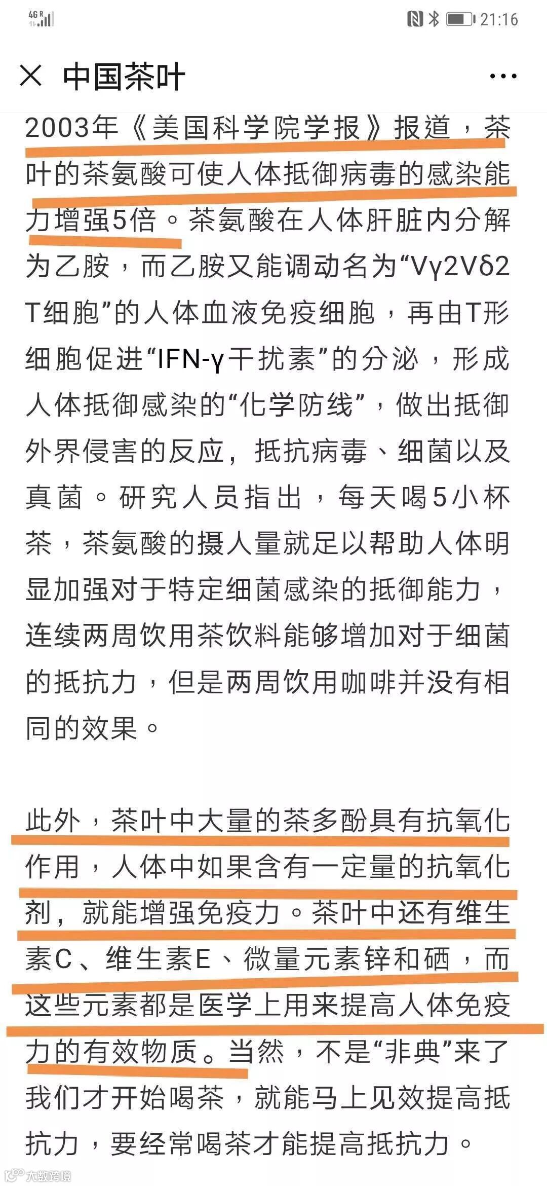 早在2003年的《美国科学院报学报》中就有报道:“茶叶的茶氨酸可使人体抵御病毒的感染能力增强5倍。”