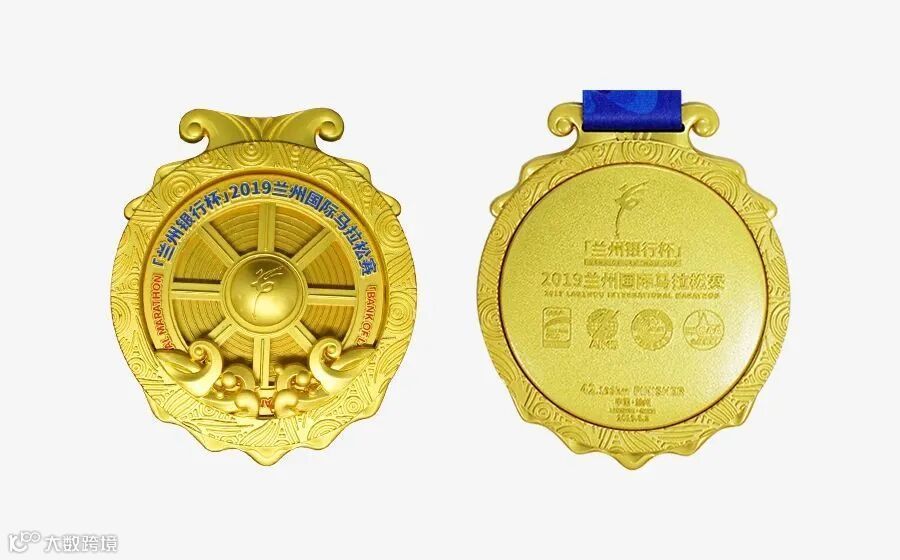 2019“兰马”奖牌设计上,以兰州水车为原型、内环与外环镶嵌的形式进行设计。奖牌外环花纹来自于兰州马家窑彩陶元素。内环设计为可转动的水车样式,底部点缀有水花,象征着生生不息的黄河文化。整个奖牌将黄河、水车、甘肃彩陶等元素融合起来,展现出兰州悠久而灿烂的人文历史,同时也让跑者感受到黄河之都奔腾不息的磅礴气势。