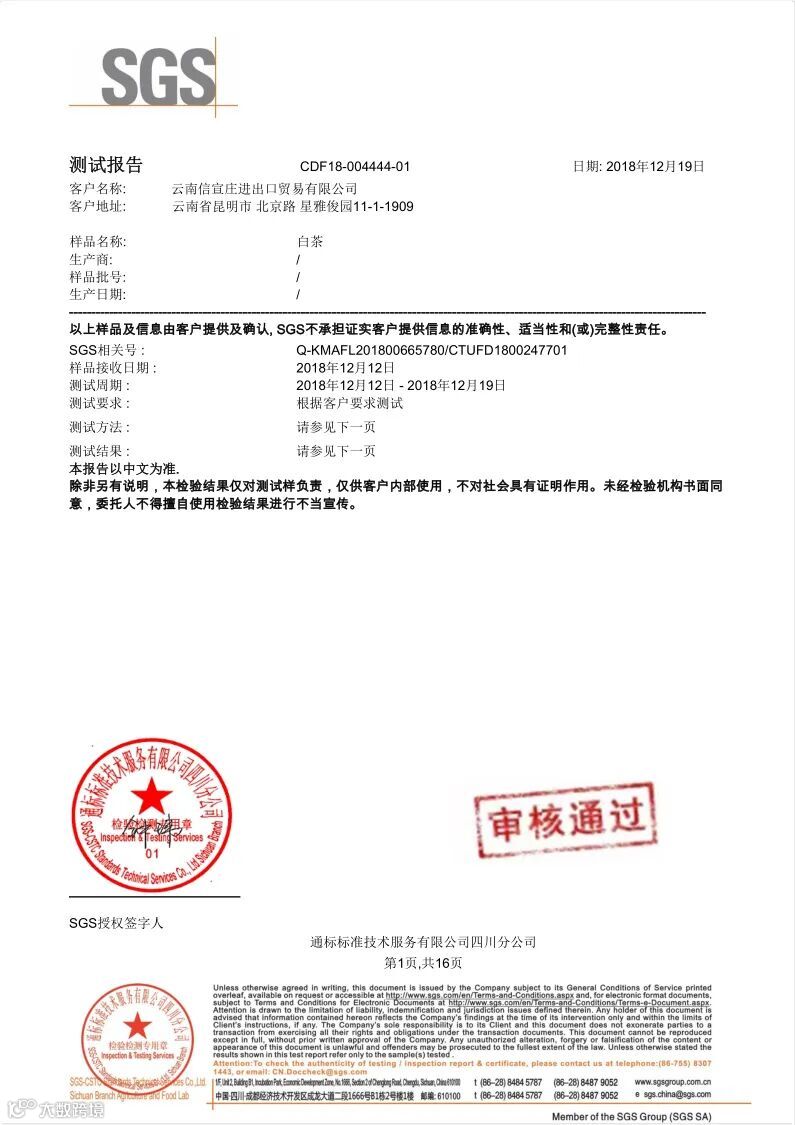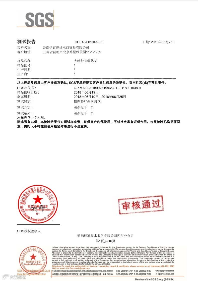 品 质 好 茶 SGS 认 证