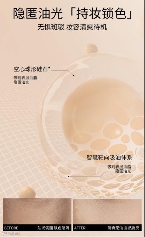 多层结构:底妆产品中通过不同层次的光学效应(如反射、散射、吸收)实现更自然的妆效。例如,底层通过散射光模糊毛孔,中层通过反射光提亮肤色,表层通过吸收光调整色调。