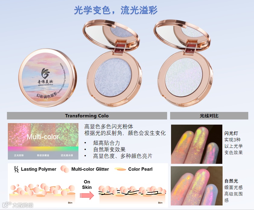 智能光学材料:光致变色材料在特定光照下改变颜色,实现动态妆效。