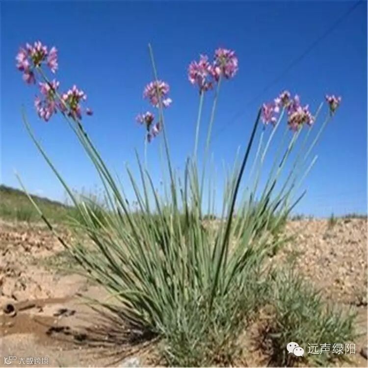 沙葱(Allium mongolicum)别名蒙古韭,是百合科多年生草本。是沙漠草甸植物的伴生植物,常生于海拔较高的砂壤戈壁中,因其形似幼葱,故称沙葱。分布于新疆(东北部)、青海(北部)、甘肃、宁夏(北部)、陕西(北部)、内蒙古和辽宁(西部)。