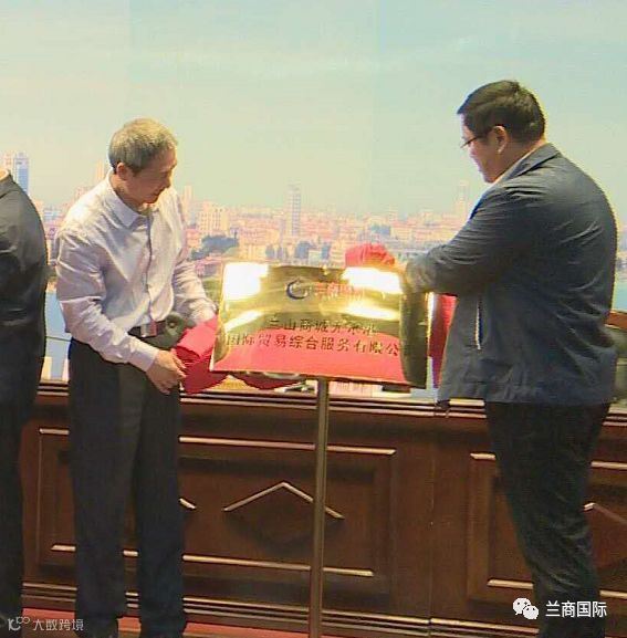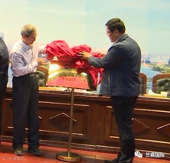 区政协副主席强军同志,区发改局局长雷贵松同志为兰山商城无水港国际贸易综合服务有限公司揭牌。