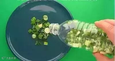 没用完的葱放在塑料瓶里保存。