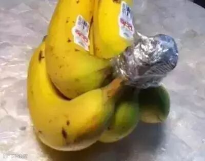 香蕉头用保鲜膜裹好,也可以延长保存期。