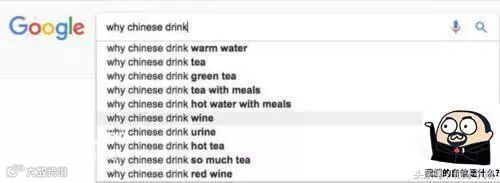 老外对我们为啥常年喝热水也是非常好奇,你去谷歌搜“为啥中国人喝......”出来第一个就是“中国人为啥喝热水?”