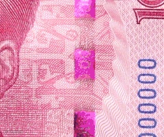 位于票面正面中部。垂直票面观察,数字以金色为主;平视观察,数字以绿色为主。随着观察角度的改变,数字颜色在金色和绿色之间交替变化,并可见到一条亮光带上下滚动。