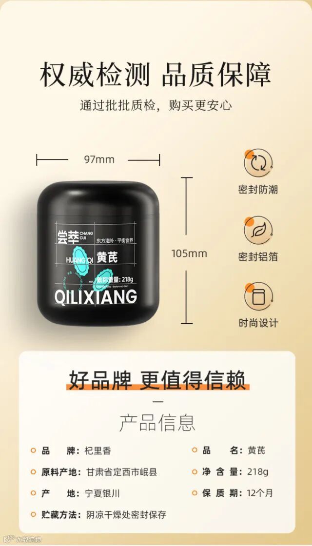 【余额提货】杞里香 甘肃岷县0.8-1.0大片黄芪218g罐装