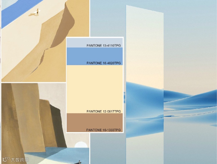 以主推的罗比亚蓝和杏子冰淇淋的清爽配色添加玛萨拉红棕的深色,呈现浅中深的舒适视觉比重。
