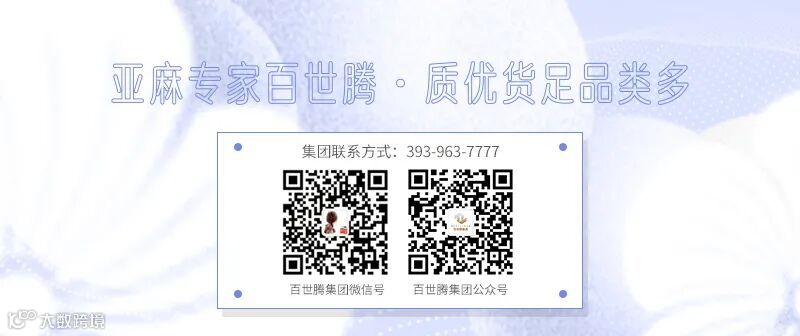 百世腾集团原料打成麻100%欧洲进口,目前,包括亚麻布、麻棉布、麻粘布、针织布、印花布、提花布、绣花布在内的几十种麻产品。