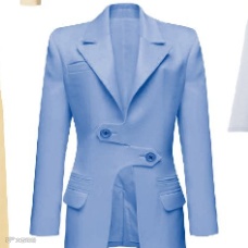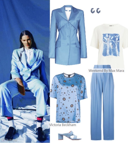 在2022春夏,Della Robbia Blue(罗比亚蓝)被推广于服装产品,色调明快而简洁,适用于极简、轻商务的通勤系列,传递都市感的亲和力。适用于单品Power Suit,通过织物肌理、精准裁剪以及肩部延长的廓形方式,将完美宽肩和纤细的腰身之比达到对身体的简约雕琢。