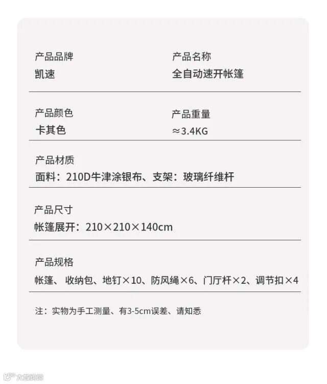 【产品尺寸】:帐篷:210210140cm(3%)