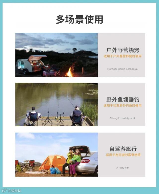 【产品用处】:户外野营、烧烤、垂钓、自驾旅行