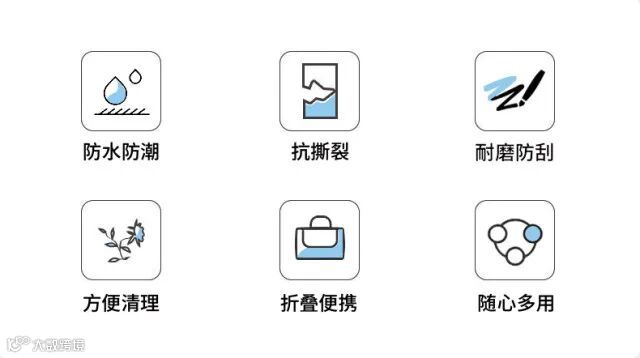 ,防潮不沾草,一擦即净,不易渗透,不易弄脏,不粘落叶枯草零食碎屑,一抖即净。