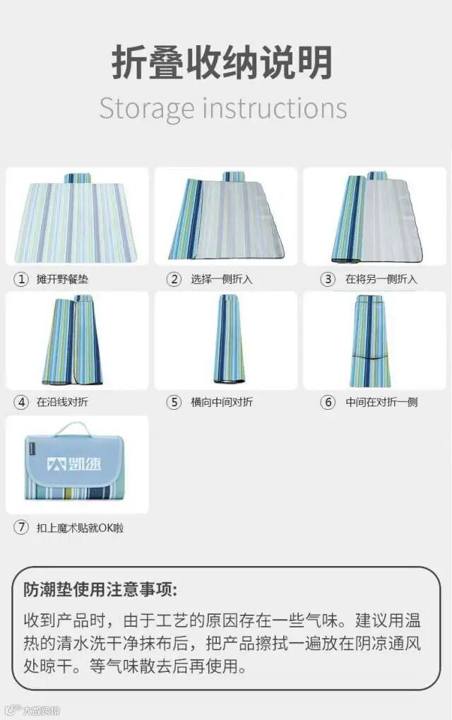 6.野餐垫折叠后直接就可手拎,携带方便,不占用空间。