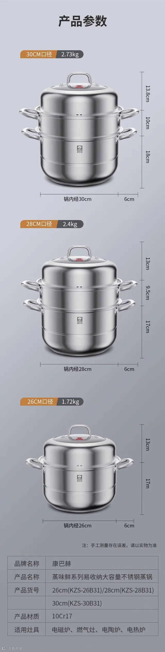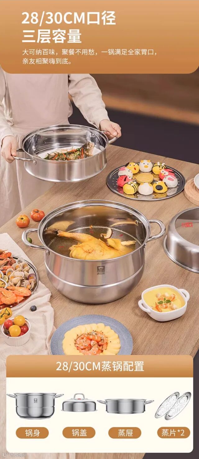 【周末内购】康巴赫蒸味鲜系列不锈钢三层蒸锅