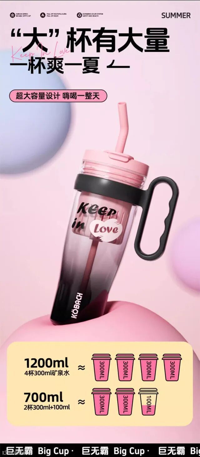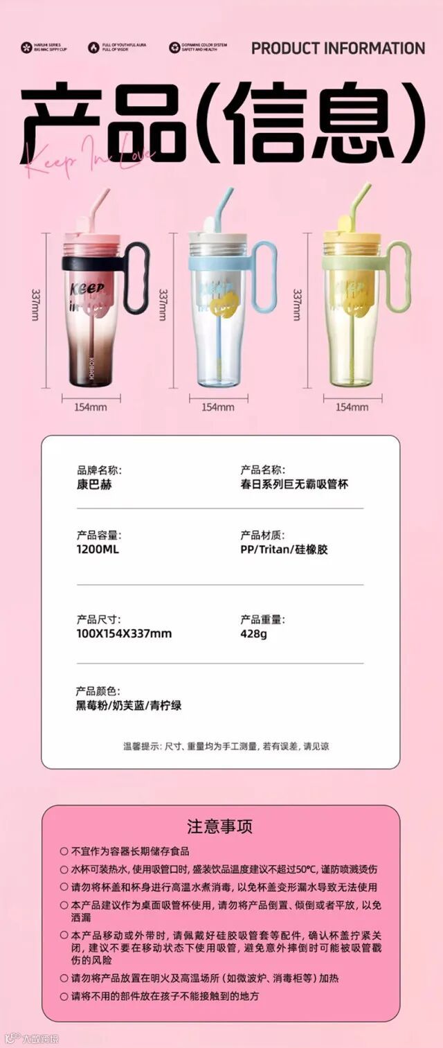 【周末内购】康巴赫春日系列巨无霸吸管杯1200mL