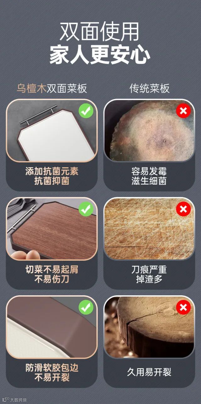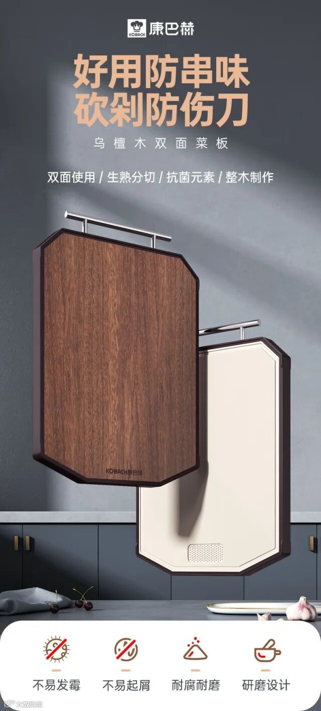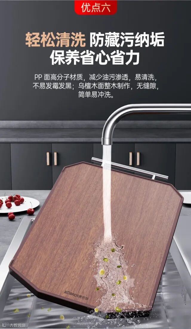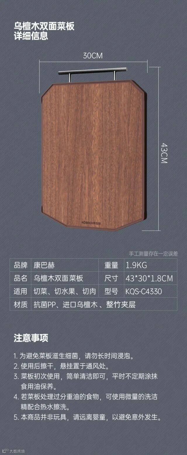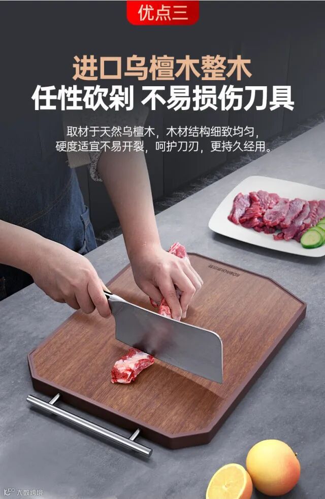 【周末内购】康巴赫乌檀木双面菜板 43*30*1.8cm KQS-C4330