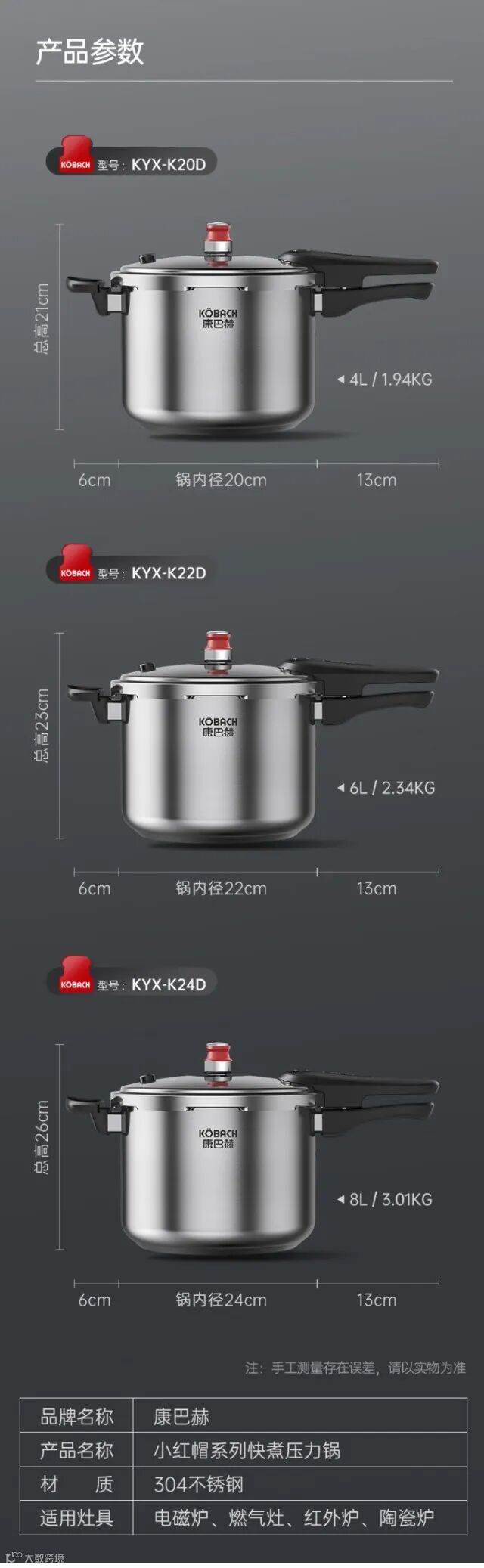 【周末内购】康巴赫小红帽系列快煮压力锅20/22/24cm可选 KYX-K20/22/24D